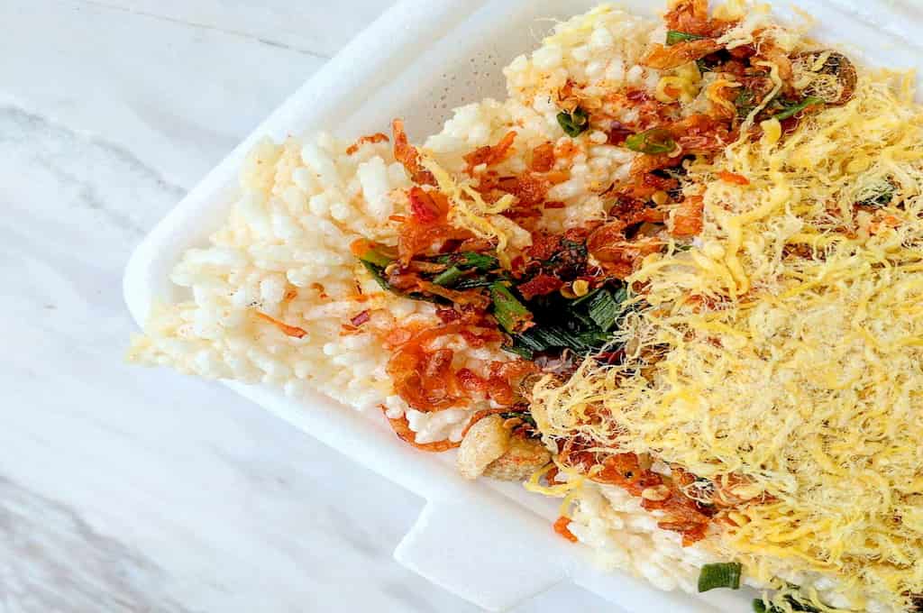 Bánh căn, một trong số những món đặc sản của Nha Trang, tại chợ Phương Sài thường chỉ được bán vào buổi sáng và hầu hết là nhân trứng gà hoặc trứng cút, ăn thêm cùng với xíu mại. Mỗi đĩa bánh căn có từ 6 - 8 cái và có giá khoảng 12k. Ngoài ra, bạn có thể gọi thêm xíu mại với giá 2k/viên