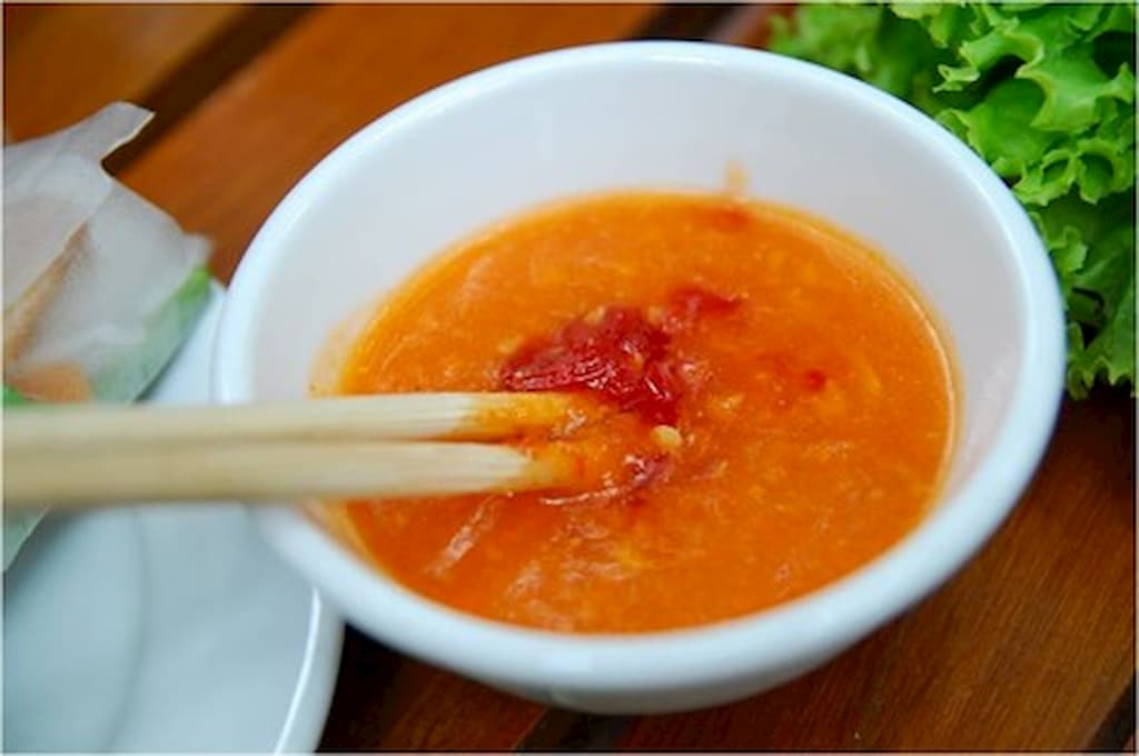 Và còn tuyệt vời hơn khi nước chấm có tôm tươi băm hoặc xay nhỏ để tạo vị ngọt của tôm và vị đậm đà của nước tương tạo nên một màu vàng da cam đặc trưng không thể lẫn với gia vị chấm nào khác.