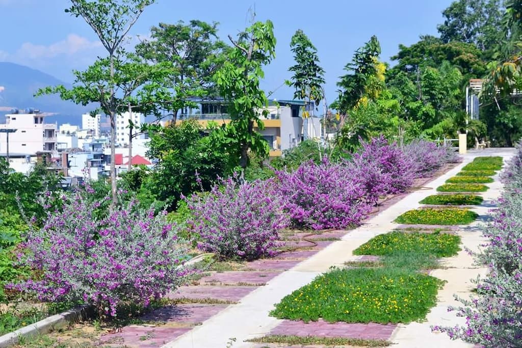 -Phía sau Hội trường số 1 Đại học Nha Trang có những góc “sống ảo” cực kì lãng mạn và dễ thương với loài hoa màu tím xen lẫn sắc xanh vô cùng bắt mắt.