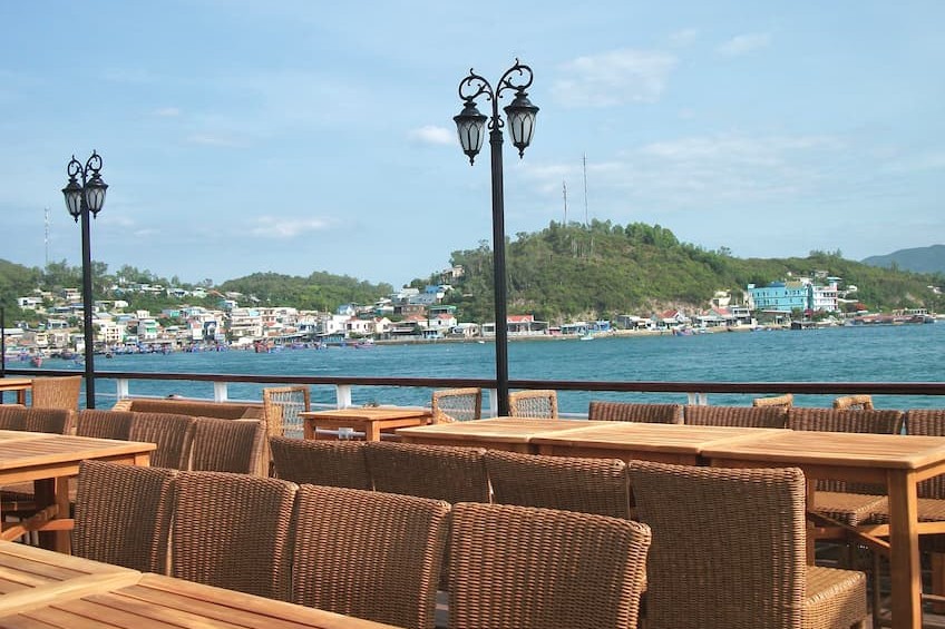 Quý khách lên tàu với sự chào đón của đội ngũ nhân viên cùng với một ly cocktail tuyệt ngon và mát lạnh. Sau đó giám đốc trài nghiệm sẽ giới thiệu về Vịnh Nha Trang, hành trình, văn hóa, ẩm thực, và những chỉ dẫn an toàn. Tàu bắt đầu di chuyển, quý khách sẽ ngắm phong cảnh tuyệt vời của Vịnh Nha Trang.