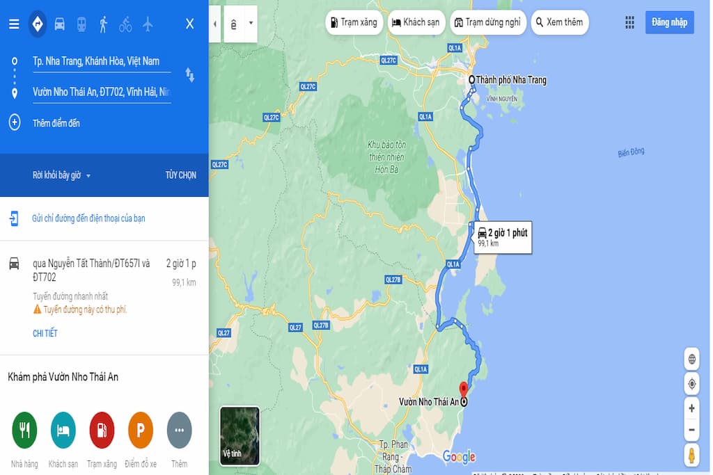 Nằm trong chương trình tour Hang rái -Vĩnh Hy -Bình Hưng một ngày bạn sẽ di chuyển đoạn tổng đi 140km di chuyển từ Nha Trang đi và lại tới Nha Trang nhé.