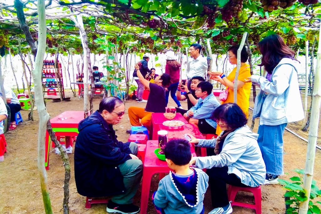 Trong không gian thoáng mát bình lặng của con người và cây cối, ngồi thẩn thở thưởng thức hương thơm của những của những quả nho thoang thoảng trong gió khẽ đưa trong những tia nắng lọt qua nhũng tán lá là cảm giác mà nhiều người mong ước của nhiều người sau thời gian làm việc vất vả.