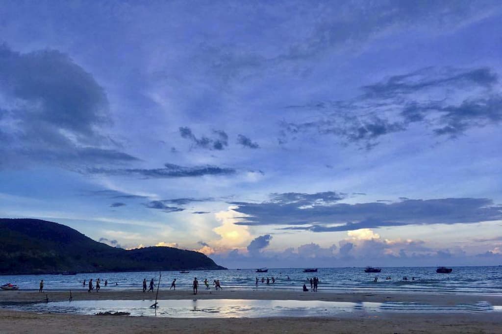 Chán chê khi nô đùa cùng làn nước mát bạn có thể đi chân trần dạo bộ trên những miền cát trắng trải dài. Ngắm nhìn khung cảnh biển trời thơ mộng. Hoặc bạn có thể nằm trên những chiếc giường võng trên mặt biển bên những hàng dừ a xanh mát, nhâm nhi một cốc nước dừa và thư thả ngắm cảnh biển. Tiếng sóng vỗ rì rào ngoài biển cả, lá dừa xào xạc đu đưa trong gió như tạo nên một khúc nhạc trong một bản nhạc dương cầm du dương, siêu lòng người.