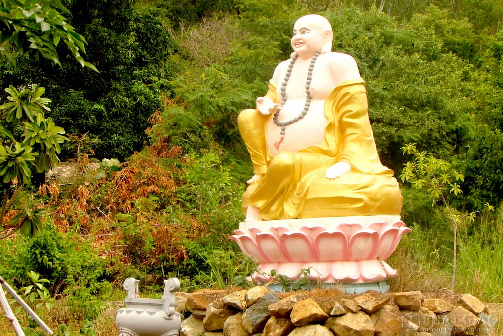 Nhìn về tay phải là tượng Phật Di Lặc, tiếp theo là chánh điện được xây dựng theo kiến trúc giống với các ngôi chùa ở Nha Trang.