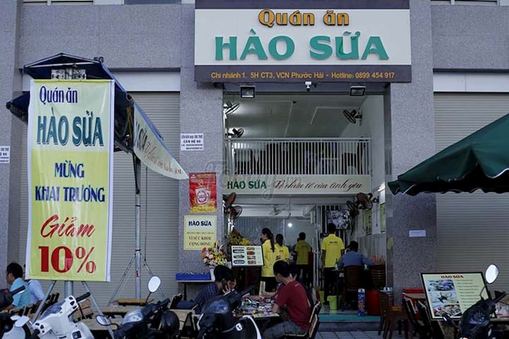 Không gian quán ở dưới chung cư nên ngồi rất thoáng mát và thoải mái. Menu ở đây đa dạng món và rất ngon nên bạn có thể thử món mới liên tục. Đúng như tên gọi của quán, đặc sản Hào Sữa ở đây cực kỳ đặc sắc, hào ở đây là hào tươi mới khui được chế biến thành rất nhiều món đa dạng, cực kỳ bắt mắt và ngon miệng. Món ăn được chế biến đậm vị dễ gây nghiện lắm. Ngoài hào ra thì còn nhiều món bạch tuộc, cơm chiên, mì xào, rau củ, lẩu, hải sản,… nên các gia đình có trẻ nhỏ cũng ăn được hết.