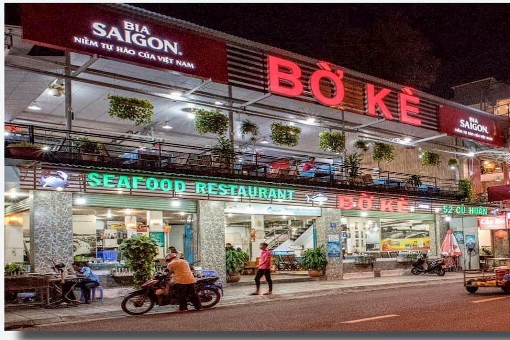 Nằm trên khu phố Bờ Kè Tháp Bà, quán hải sản ngon ở Nha Trang này cũng là một địa điểm thú vị mà bạn nên ghé thăm. Bờ Kè Quán có không gian thoáng mát, rộng rãi, view hướng biển, sẽ là một cảm giác tuyệt vời khi bạn vừa thưởng thức những món hải sản tươi ngon lại được ngắm nhìn cảnh biển thơ mông nơi đây. Phục vụ có hơi chậm tí nhưng bù lại giá cả khá mềm. Món ăn tươi ngon, gia vị được nêm nếm rất đậm đà. Bạn nào đi cùng gia đình hay nhóm bạn đông người nên ghé tới quán này ăn thử, đồ ăn chất lượng đi kèm giá cả vừa phải sẽ là sự lựa chọn lý tưởng đấy!