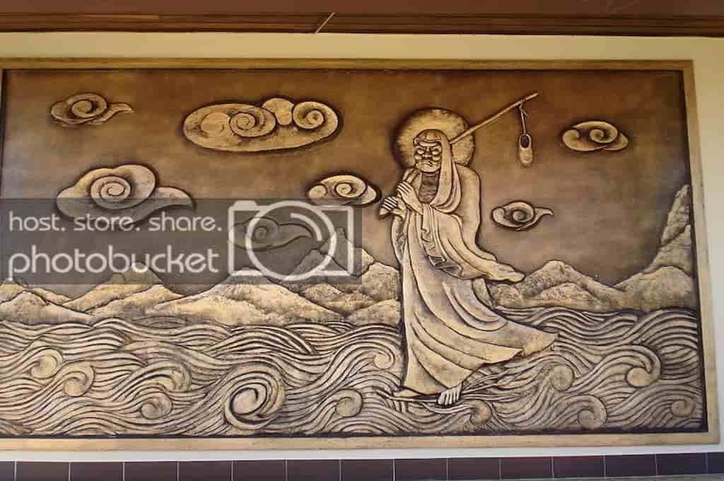 Phía trước chánh điện có 1 cái hư hương to bên trong cắm 3 cây nhang to, hai bên trái phải lư hương to trước chánh điện là gác trống và gác chuông, quả đại hồng chung bên trong gác chuông nặng khoảng 1.1 tấn.