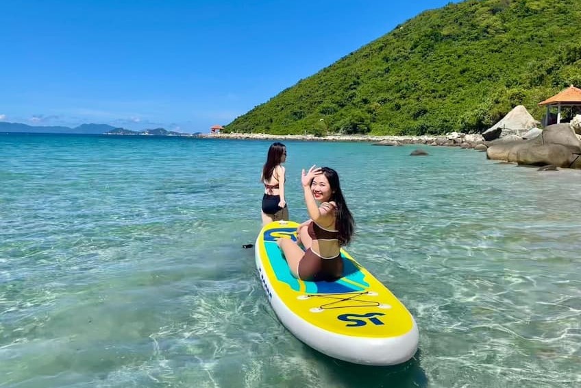 Đến Gành Nhảy. Tại đây, quý khách tự do tắm biển khám phá Gành Nhảy, tận hưởng khung cảnh hoang sơ bình yên của biển Gành Nhảy, chèo thuyền kayak, bơi ngắm san hô bằng kính lặn ống thở, bạn cũng có thể nghỉ ngơi thư giãn trên bãi biển xinh đẹp ...