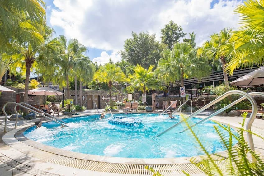 Bước 3: Sau khi thư giãn với bùn khoáng, bạn có thể tới các hồ khoáng nóng ngâm mình hay đi qua các tia nước nóng để trải nghiệm cảm giác thư giãn. Bạn có thể ngâm mình từ 10 – 30 phút theo nhiệt độ của từng hồ bùn nóng.